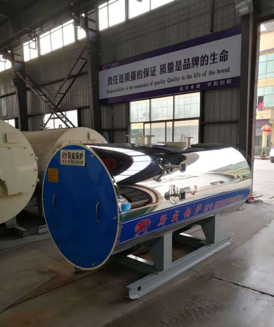 卧式蒸汽锅炉为锅壳式全湿背顺流三回程烟火管结构,火焰在大燃烧室内微正压燃烧,完全伸展,燃烧热负荷低,燃烧热效率高,有效地降低了排烟温度,节能降耗,使用经济。波形炉胆和螺纹烟管结构,既提高了锅炉的吸热强度,又满足了换热面受热膨胀的需要,科学合理,经久耐用。